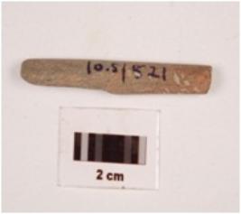 | Description / विवरण | Stone point with circular cross section, polished surface and both ends broken. |