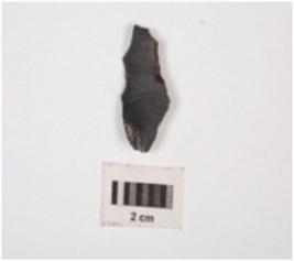 | Description / विवरण | A point made on chert flake with a mid-ridge on dorsal side, diffused bulb on ventral side and proximal end broken. |