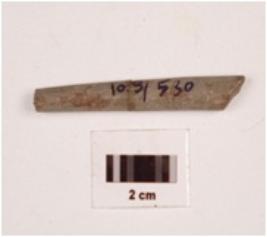 | Description / विवरण | Stone point with rectangular cross section, polished and smooth surface, chemically treated, both ends broken. |