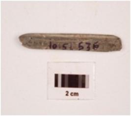| Description / विवरण | Stone point with rectangular cross section, polished surface, both ends broken. |
