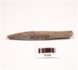 | Description / विवरण | An elongated stone point, tip is missing broken from bottom rectangular section and polished surface. |