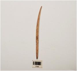 | Description / विवरण | Bone needle, long in size and slightly curved, partly broken from both ends, smooth surface and oval in section. |
