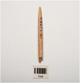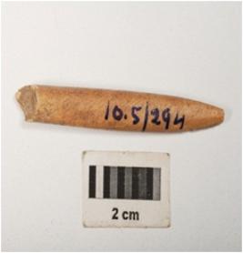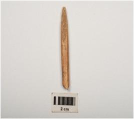| Description / विवरण | Bone point with polished surface and partly broken from both pointed and thick ends. Circular section. |