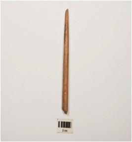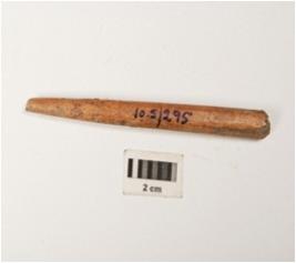 | Description / विवरण | Fragment of bone point with polished surface, long in size, broken at both pointed and thick ends, circular in section. |