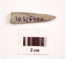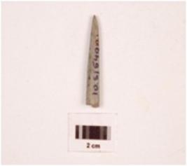 | Description / विवरण | An elongated stone point, tip is missing, broken from bottom, polished surface, square in section. |