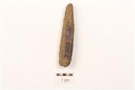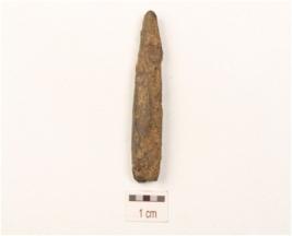| Description / विवरण | A fragment of point made on bone, broken upper part and tip broken, rough surface and given heat treatment. |