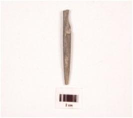 | Description / विवरण | An elongated stone point, polished surface, tip is missing, broken from bottom, rectangular section. |