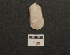 | Description / विवरण | A scraper made on chert with flake scars on one side surface and use wear marks along the cutting edges. |