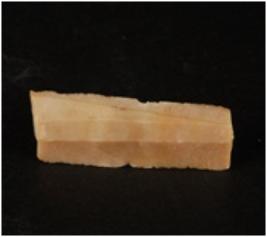 | Description / विवरण | Chert blade double ridge on the dorsal, bulb is absent, distal end and proximal end is broken, use-ware marks along both the cutting edges and trapezoidal section. |