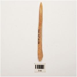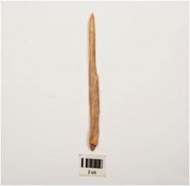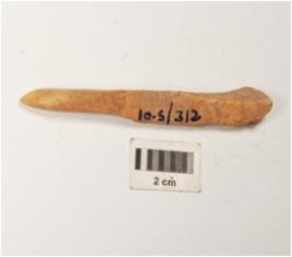 | Description / विवरण | Bone point, polished towards pointed end long in size, triangular section, partly broken at thick end. |
