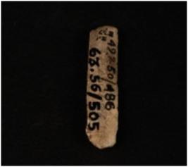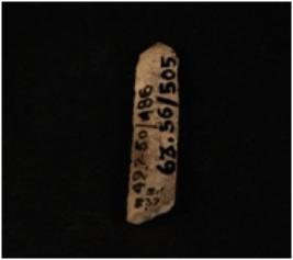 | Description / विवरण | Chert blade, double ridge on the dorsal, bulb is absent, dorsal and proximal end is broken, use-ware marks along the cutting edge and trapezoidal section. |