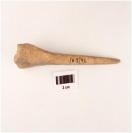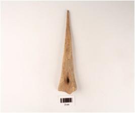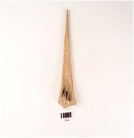 | Description / विवरण | Bone point, slightly broken tip of point, perforation one end and slightly rough surface. |