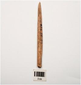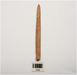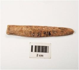 | Description / विवरण | Bone point with smooth and grains on surface, circular section, broken at thick end. |