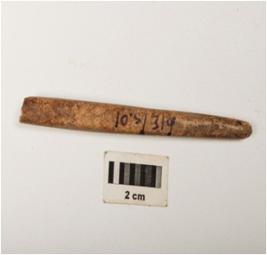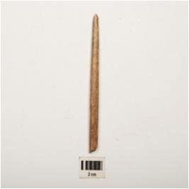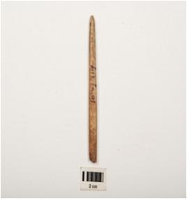 | Description / विवरण | Bone point, long in size with polished surface, partly broken at pointed and thick ends, circular in section. |