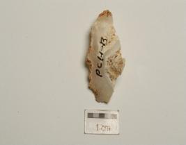 | Description / विवरण | A chalcedony flake, chippings on surface and cortex visible on surface. |