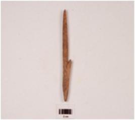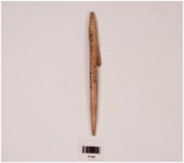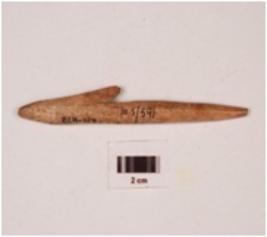 | Description / विवरण | A bone arrow head, one end is pointed and another end is flat and thick, smooth surface and polished. |