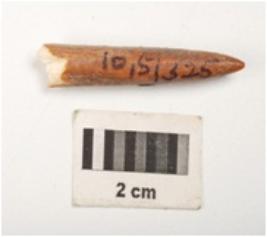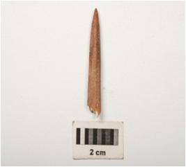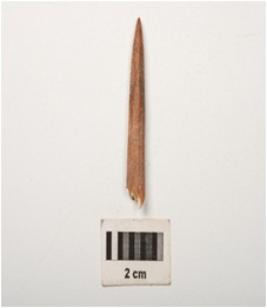 | Description / विवरण | Fragment of a bone point polished surface with a pointed end, broken at other end and circular in section. |