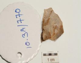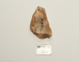 | Description / विवरण | Chalcedony flake, irregular shape, positive bulb on surface and chippings on another surface. |