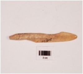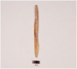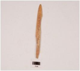 | Description / विवरण | A broken piece of bone scraper, flat surface one end is pointed and sharp, edges are broken polished surface. |