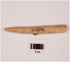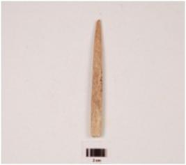 | Description / विवरण | A bone point, round surface, one end is pointed another end is flat and broken, rough surface and polished surface. |