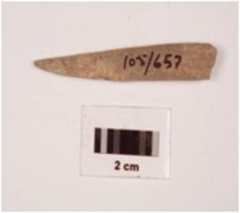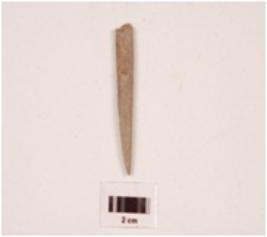 | Description / विवरण | A bone point, flat surface and one end is pointed another end is broken, rectangular in section, smooth surface and polished. |