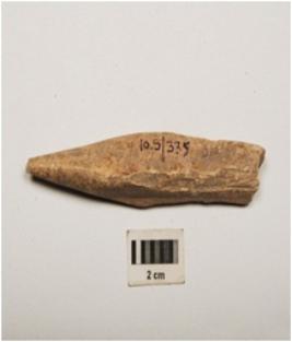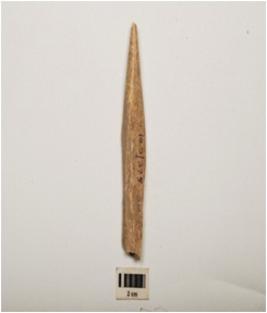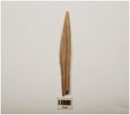 | Description / विवरण | Bone spearhead with polished surface and partly broken pointed end, rectangular in section and broken at flat end. |