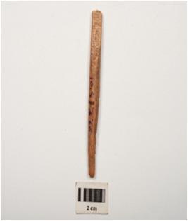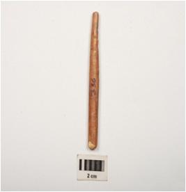 | Description / विवरण | Bone point, long in size with polished surface and incised criss cross section and broken from both ends. |