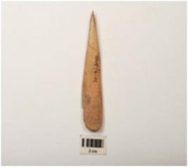| Description / विवरण | Bone point, polished surface with one pointed and one broad end and rectangular in section. |