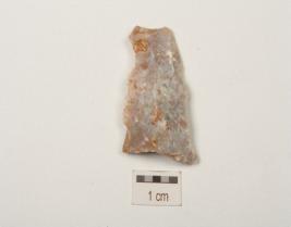 | Description / विवरण | Chert blade with prepared platform and ridge on dorsal and negative bulb on ventral and use wear marks along cutting edges. |