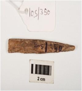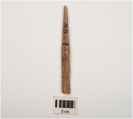 | Description / विवरण | Fragment of bone point partly smooth and grains visible on surface, circular section. |