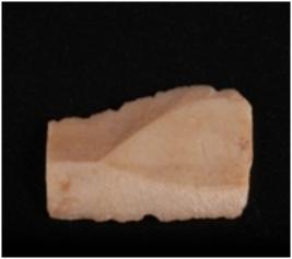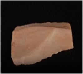 | Description / विवरण | Fragment of blade made of chert with one prominent ridge. It is small in size with use wear marks on cutting edges. |