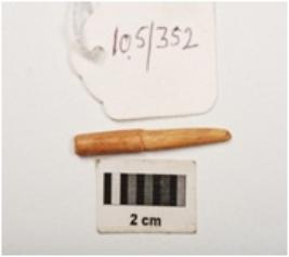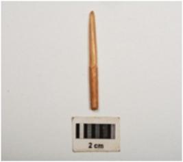 | Description / विवरण | Bone point, narraw in size with polished surface and partly broken pointed end, circular in section. |