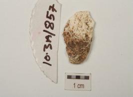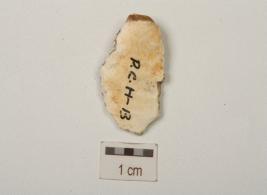 | Description / विवरण | Flake on chert with visible cortex on dorsal and ripple marks on ventral and wear marks along cutting edges. |