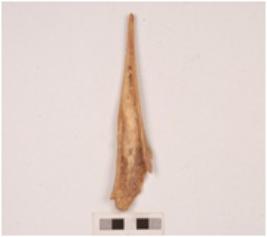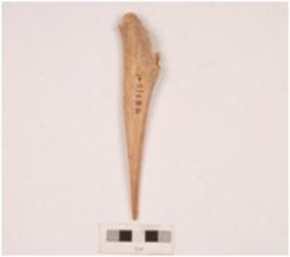 | Description / विवरण | A bone tool pointed and depressed on bottom, polished. |