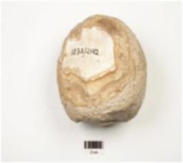 | Description / विवरण | A pebble stone with flake scars around the surface. |