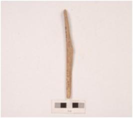| Description / विवरण | Fragment of a bone scraper with polished surface, partly broken. |