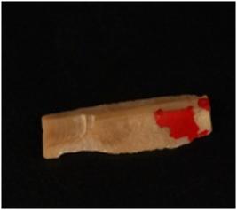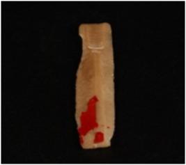 | Description / विवरण | Chert blade with two ridges, trepezoidal in section and use-ware marks along the cutting edges. |