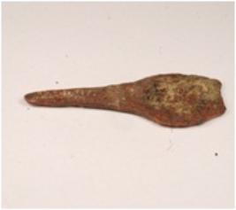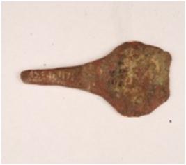 | Description / विवरण | A copper spear head, broken from the top and sharp edges. |
