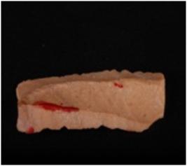 | Description / विवरण | Fragment of parallel chert blade with two ridges, trapezoidal section and bands on both sides. |