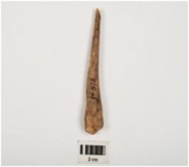 | Description / विवरण | Fragment of bone point top portion is intact and lower portion is partly broken and rough surface. |