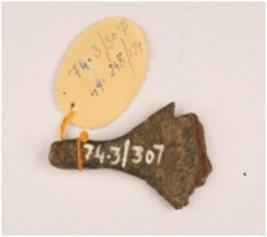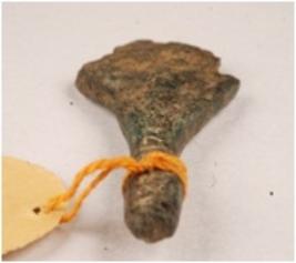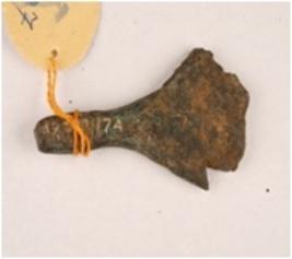 | Description / विवरण | Fragment of a copper spear head,remaining portion of spearhead is missing, cutting edges with long tang. |