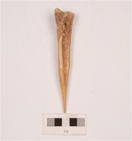 | Description / विवरण | A sharply prepared bone point, proximal and distal ends are intact, polished surface, visible hollow side. |
