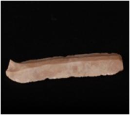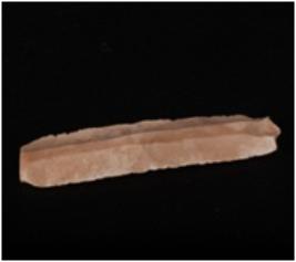 | Description / विवरण | Fragment of Parallel sided chert blade with two ridges on dorsal side and use-wear marks on cutting edges. |
