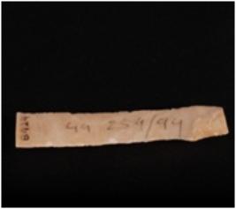 | Description / विवरण | Fragment of Parallel sided chert blade with two ridges and use-wear marks on cutting edges. |