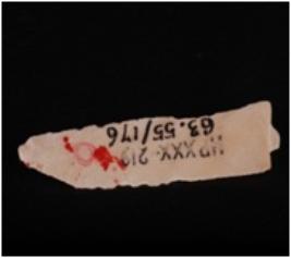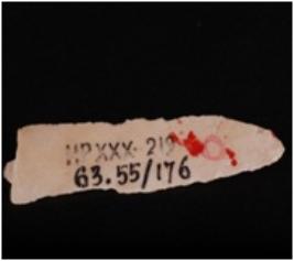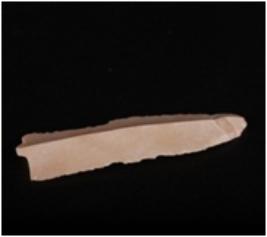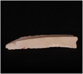 | Description / विवरण | Fragment of chert blade with one ridge and use-wear marks on cutting edges. |