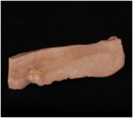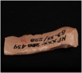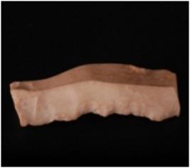 | Description / विवरण | Fragment of chert blade with two ridges, prominent bulb and use-wear marks on cutting edge. |