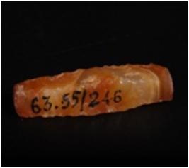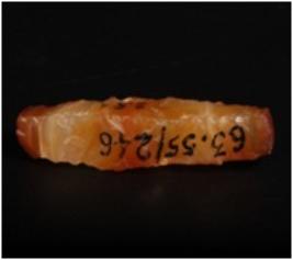 | Description / विवरण | Rectangular carnelian core, unfinished with crested ridge. |