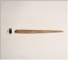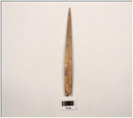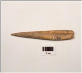| Description / विवरण | A bone point with sharp end, broken broad end and polished surface. |