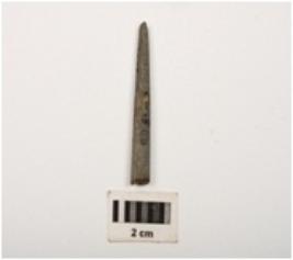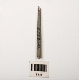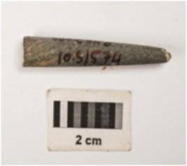 | Description / विवरण | A fragment of a point, made with himalayan soft stone, it has circular cross section, top is pointed and partly broken and bottom is broken, well polished surface. |