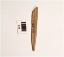 | Description / विवरण | A bone point, chipped off broad end pointed end intact and polished surface. |